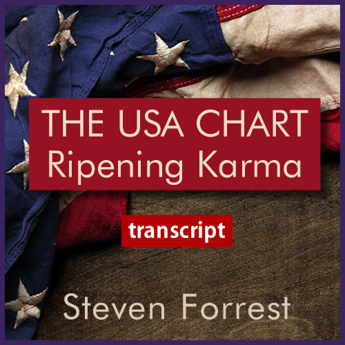 At a practical level, there is almost always controversy about the exact time of a nation’s “first breath.” Here, Steven uses the so-called “Sibley chart” for the United States with Placidus houses. He feels that chart works best. Listen and you can judge for yourself. Includes a look at the transit of Pluto opposite the USA Sun, the Pluto return, the karma of the USA south node, and the healing potential in the north node.